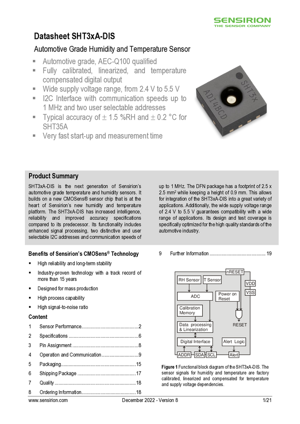 SHT31A-DIS-B SHT30A-DIS-B - ±3% Digital automotive-grade humidity and temperature sensor