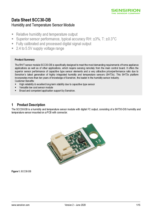 SCC30-DB - ±3% Digital humidity and temperature sensor module