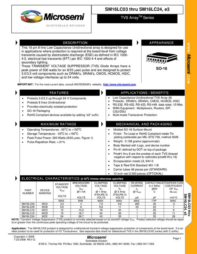 - SM16LC03, SM16LC05, SM16LC15, SM16LC12, SM16LC03-e3, SM16LC15-e3, SM16LC03C, SM16LC03C-e3, SM16LC24C-e3, SM16LC15C-e3, SM16LC12-e3, SM16LC05C-e3, SM16LC12C, SM16LC15C, SM16LC24-e3, SM16LC05C, SM16LC24C, SM16LC05-e3, SM16LC24