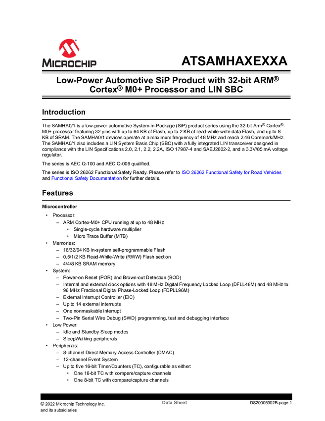 ATSAMHA0E15A-B ATSAMHA1EXXA - Low-Power Automotive SiP Product