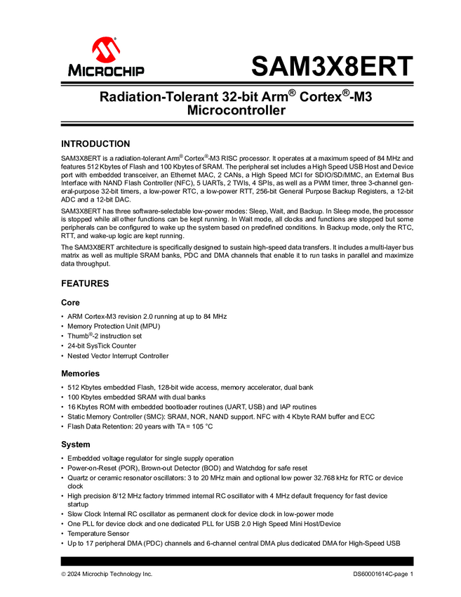 SAM3X8ERT: Radiation-Tolerant 32-bit Arm® Cortex®-M3 Microcontroller Data Sheet