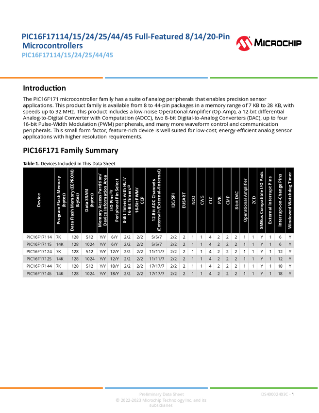 PIC16F17124, PIC16F17115, PIC16F17114, PIC16F17145, PIC16F17144