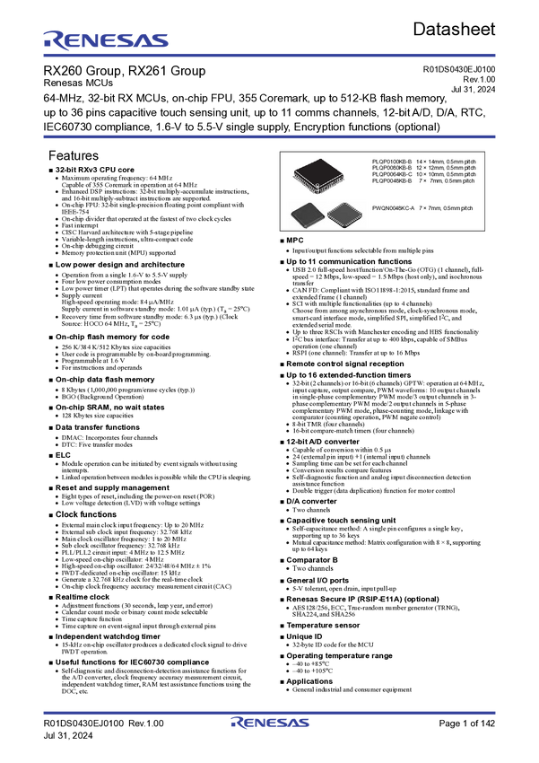RX260 Microcontrollers with Outstanding Power Efficiency and Advanced Touch Funct...