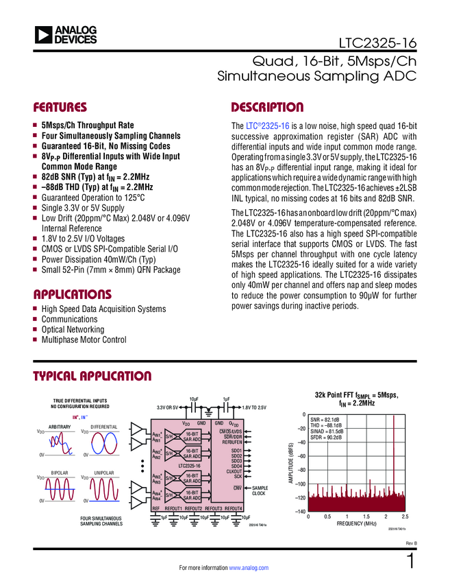 Quad, 16-Bit, 5Msps/Ch Simultaneous Sampling ADC