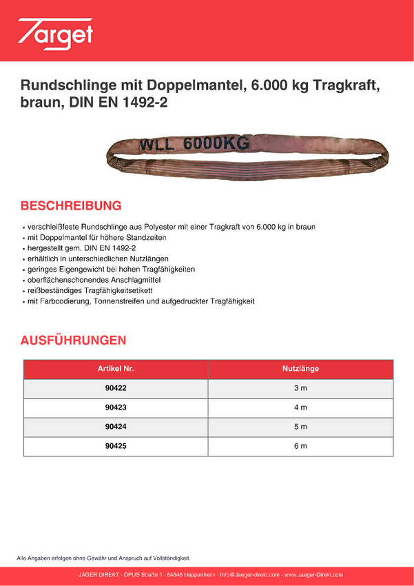 Target Ladungssicherung 90423 Taśma okrągła Obciążenie WLL=6 t brązowy