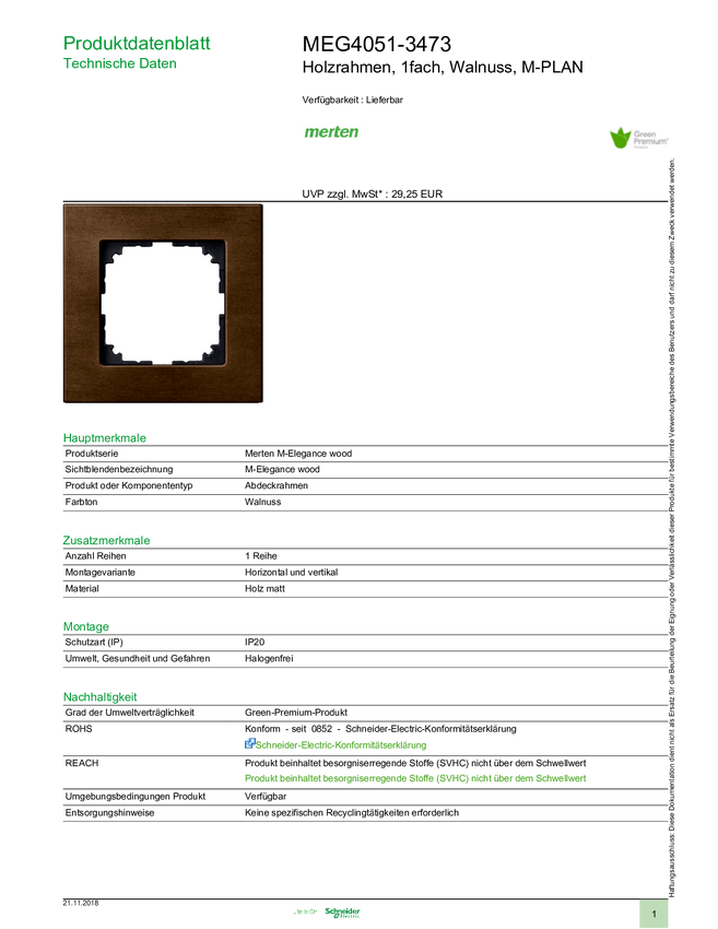 MEG4051-3473 Osłona Ramka Merten System M MEG4051-3473, orzech włoski