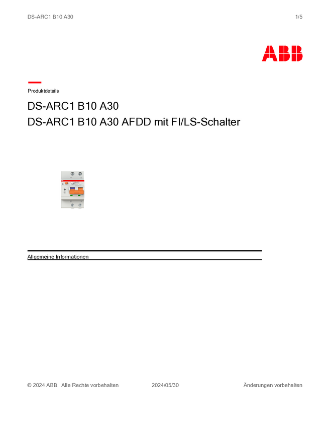 2CSA255103R1105 Wyłącznik chroniący przed zwarciem łukowym ABB 2CSA255103R1105 2 styki 230...