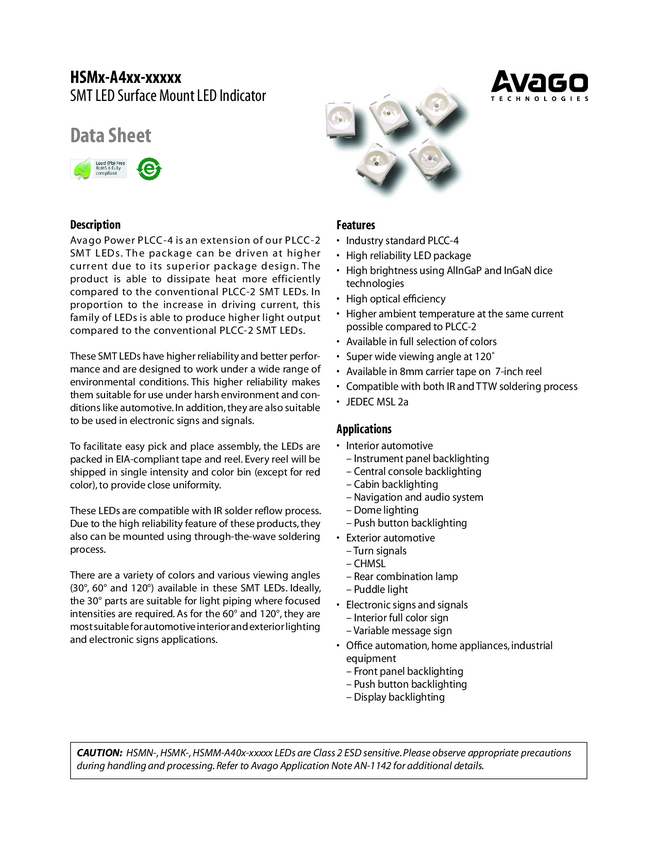 HSML-A401-U40M1 Dioda LED SMD Avago Technologies HSML-A401-U40M1 , PLCC
