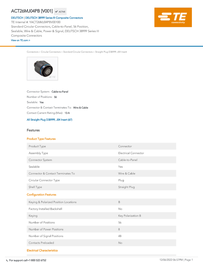TE Connectivity YACT26MJ04PBV00100 Złącze okrągłe, 1 szt.