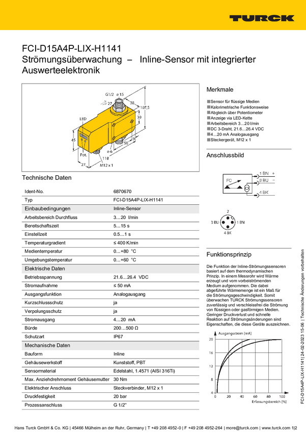 6870670 Turck Czujnik liniowy FCI-D15A4P-LIX-H1141 6870670 Zasilanie (zakres): 21.6...