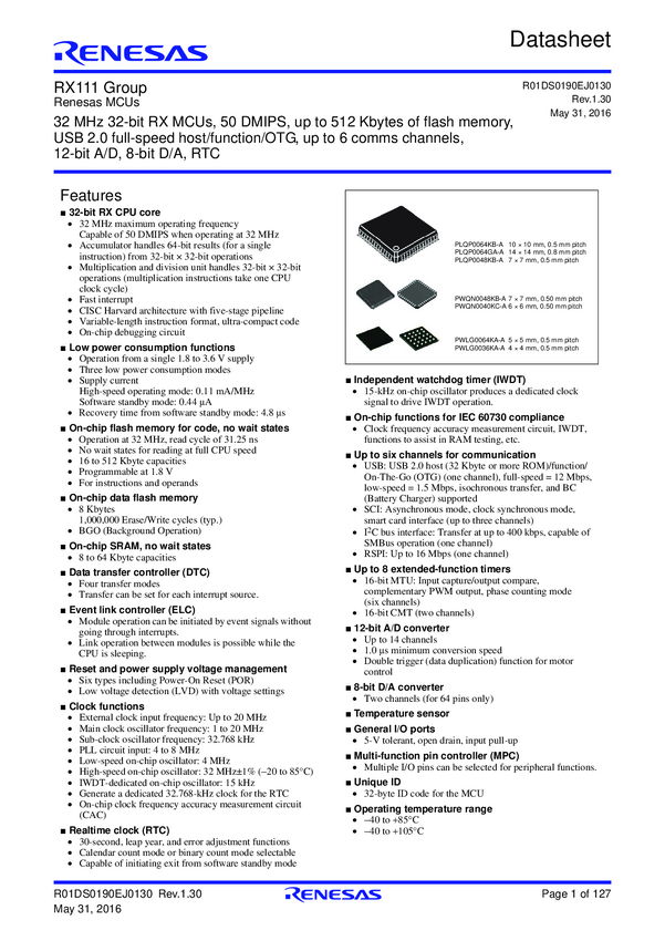 RX111 32-bit Microcontroller with Small-capacity ROM/Low Pin Count Lineup and Bui...