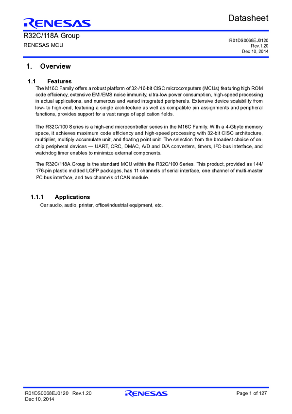 R32C/118A 32-bit Microcomputers (Non Promotion)