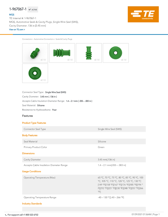1-967067-1 MQS - Seals TE Connectivity 1-967067-1, 1 szt.