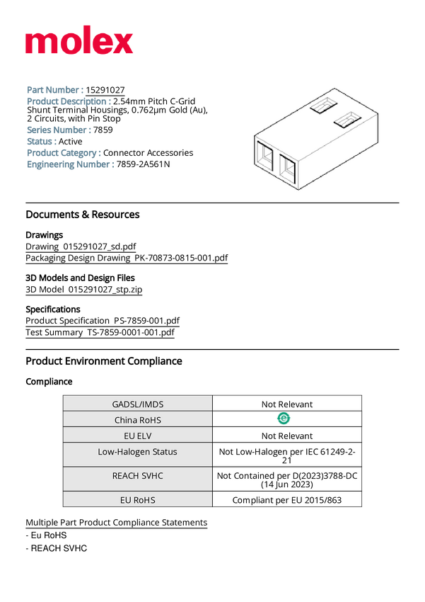 Molex 15291027 CGRID SHUNT Molex 15291027, 1 szt.