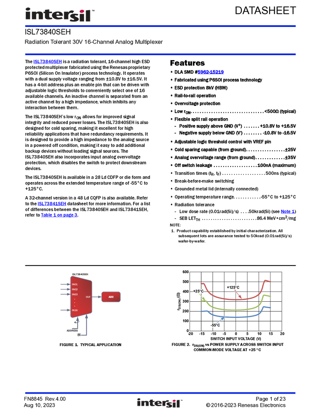 ISL73840SEH Radiation Tolerant 30V 16-Channel Analog Multiplexer