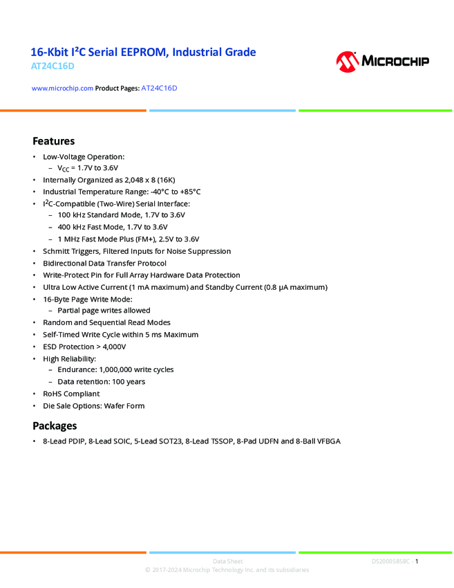AT24C16D - 16-Kbit I²C Serial EEPROM Industrial Grade Data Sheet