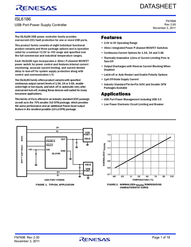 ISL6186XXC USB Port Power Supply Controller - Covering the Commercial Temperature Rang...