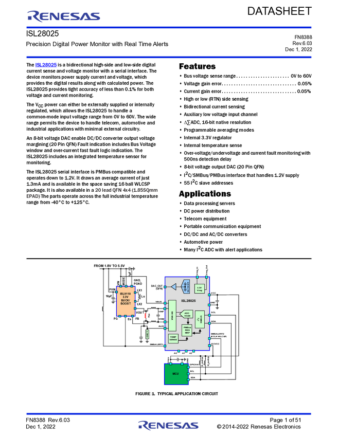 ISL28025 Precision Digital Power Monitor with Real Time Alerts