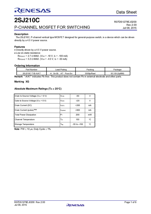 2SJ210C-T1B-AT, 2SJ210C-T1B-A, 2SJ210C(0)-T1B-AT, 2SJ210C(0)-T1B-A