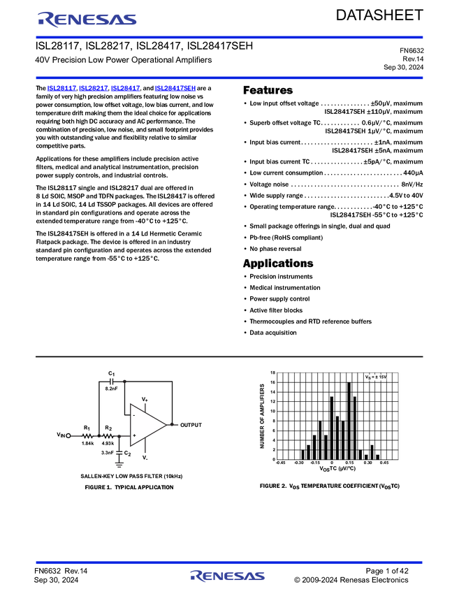 - ISL28217FBBZ, ISL28217FBBZ-T13, ISL28217FBBZ-T7, ISL28217FBZ, ISL28217FBZ-T13, ISL28217FBZ-T7, ISL28217FRTBZ, ISL28217FRTBZ-T13, ISL28217FRTBZ-T7, ISL28217FRTZ, ISL28217FRTZ-T13, ISL28217FRTZ-T7, ISL28217FUZ, ISL28217FUZ-T13, ISL28217FUZ-T7, ISL28217FUZ-T7A