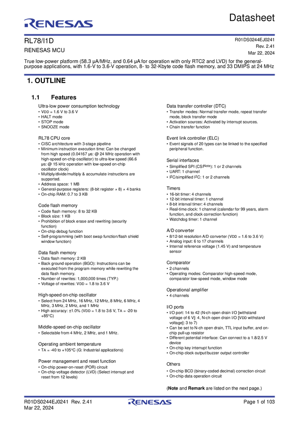 RL78/I1D Microcontrollers Suitable for Applications such as Detectors and Sensors Re...