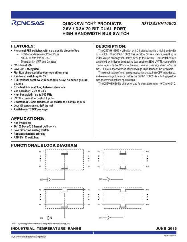 2.5V/3.3V 20-Bit Dual Port, High Bandwidth Bus Switch