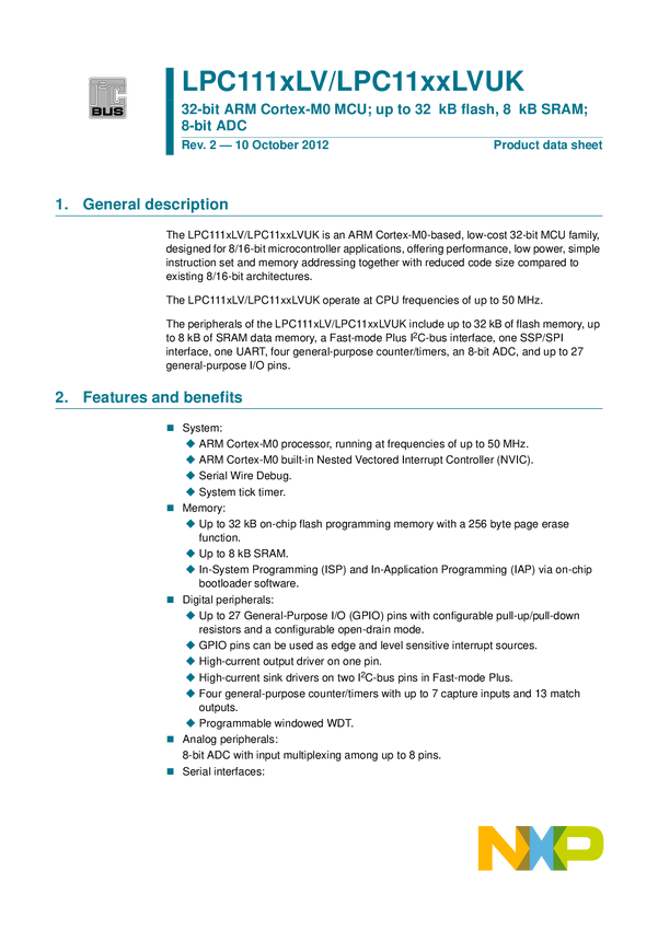 LPC1114LVFHI33, LPC1114LVFHN24, LPC1112LVFHI33