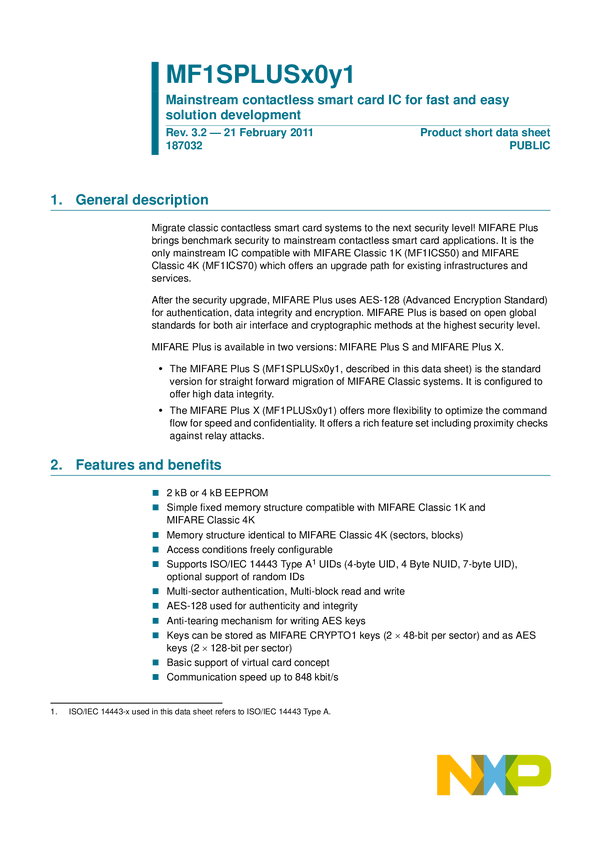 MF1SPLUS6001DA4 MIFARE Plus S, 2 KB, 7 Byte UID, MOA4