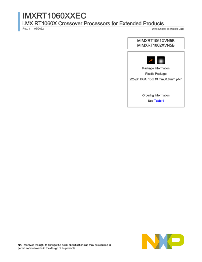 MIMXRT1062XVN5B i.MX RT1060: Crossover MCU with Arm® Cortex®-M7