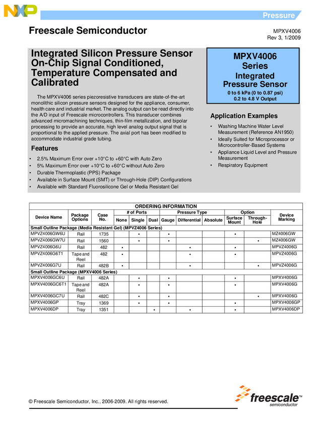 MPXV4006GC7U, MPVZ4006GW7U, MPVZ4006GW6U, MPXV4006DP, MPVZ4006G6