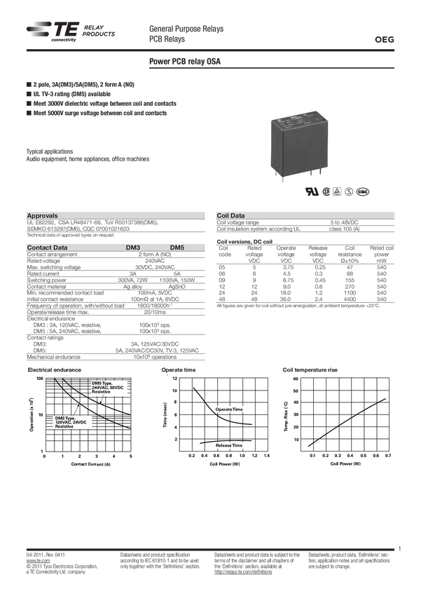 Przekaźnik; elektromagnetyczny; OSA-SS-224DM3.000; DPST-NO 2 styki zwierne; 24V DC; 3A/240VAC; na PCB; = ALA2PF24; 6-1419124-1; HF42F/024-2HS; FTR-F4AK024T; 5-1419124-9; TE Connectivity; RoHS