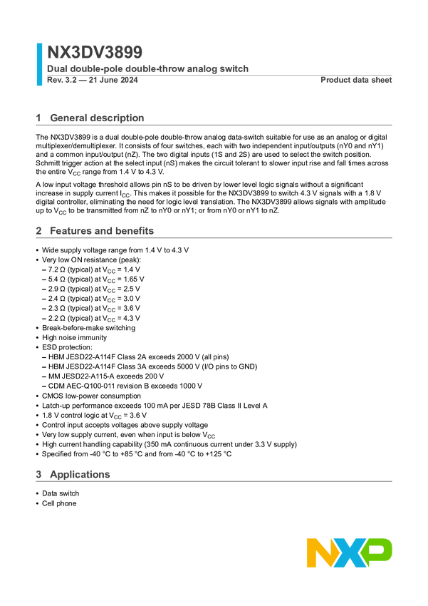 NX3DV3899GU Dual double-pole double-throw analog switch