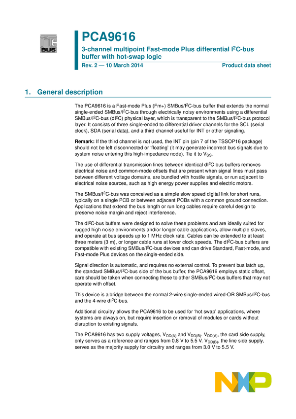 PCA9616PW Dual Supply 3-channel multipoint Fast-mode Plus differential I2C-bus buffer...
