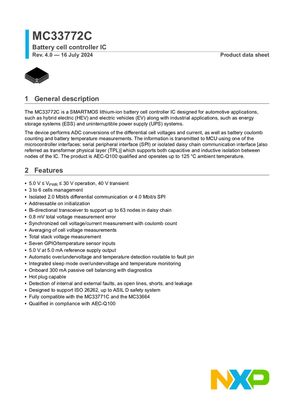 MC33772CTC1AE, MC33772CTC0AE, MC33772CTA1AE, MC33772CTP1AE, MC33772CTA2AE
