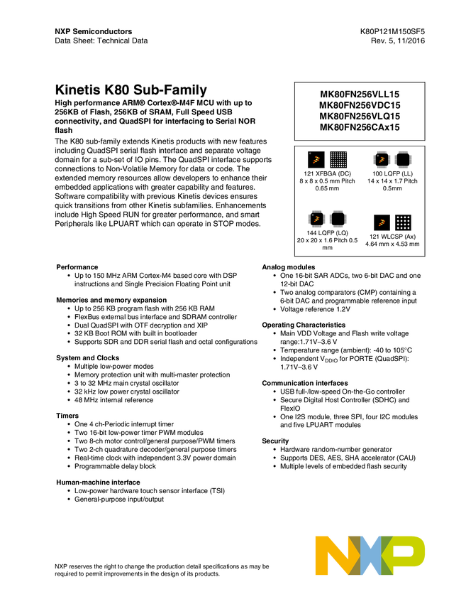 Kinetis<sup>&#174;</sup> K80-150 MHz Advanced Security and QuadSPI Microcontrollers (MCUs) Based on Arm<sup>&#174;</sup> Cortex<sup>&#174;</sup>-M4 Core