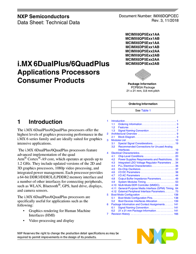 MCIMX6QP5EVT2AB, MCIMX6DP5EVT2AB, MCIMX6QP5EYM1AB, MCIMX6DP5EYM1AB, MCIMX6QP5EVT2AA