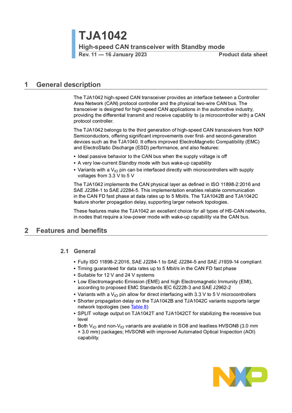 TJA1042TK High-speed CAN transceiver with Standby mode
