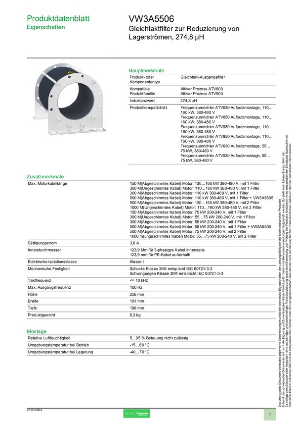 VW3A5506 Filtr sieciowy Schneider Electric VW3A5506 VW3A5506 1 szt.