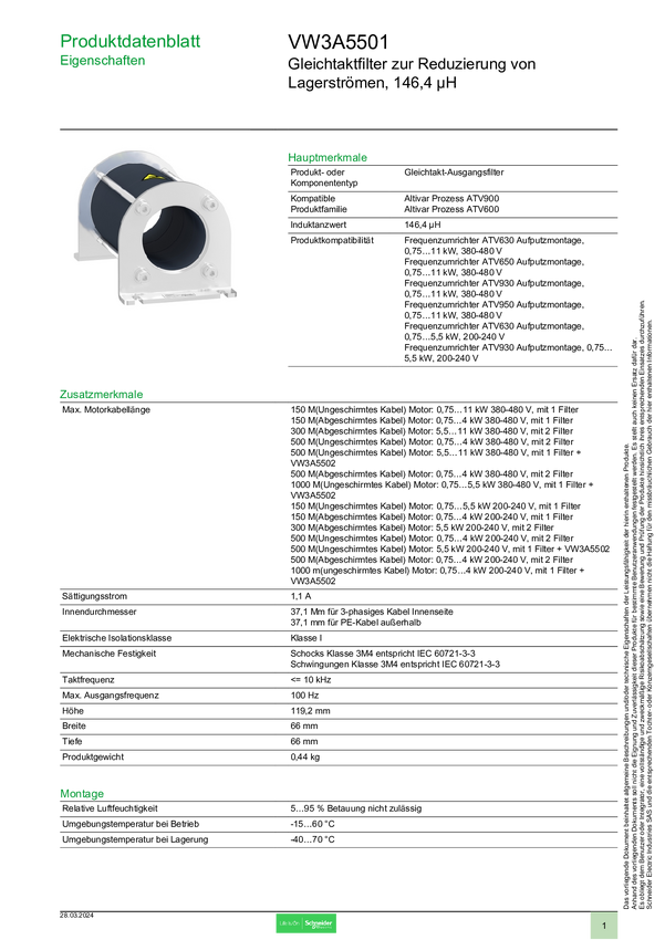 VW3A5501 Filtr sieciowy Schneider Electric VW3A5501 VW3A5501 1 szt.