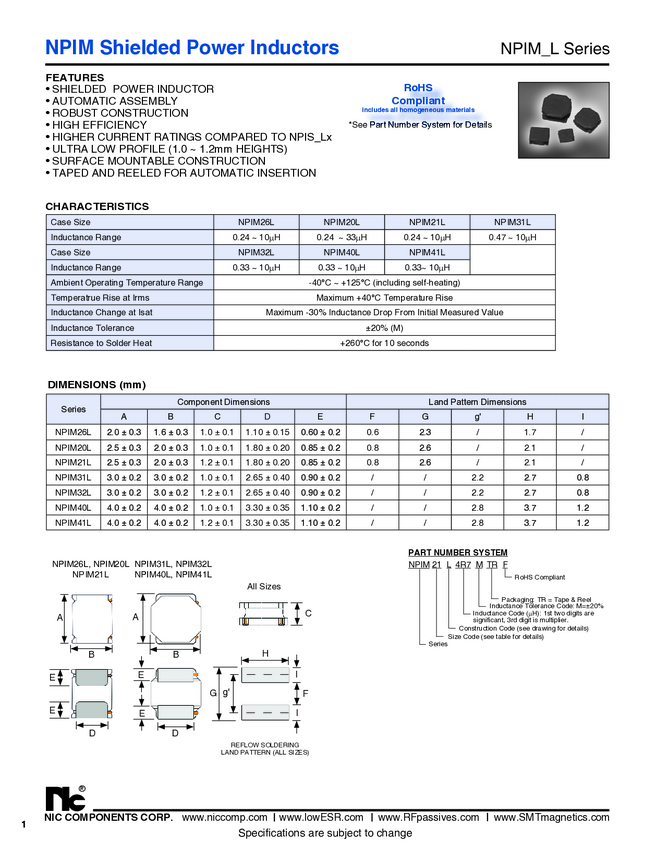 NPIM21L2R2MTRF Cewka NIC Components Metal Composite Inductor SMD NPIM21L2R2MTRF 2.2 µH 2.1...