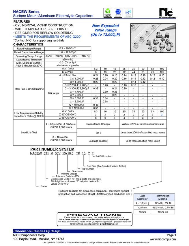 NACEW101M16V6.3X5.5TR NIC Components NACEW101M16V6.3X5.5TR Kondensator elektrolityczny 1 szt.