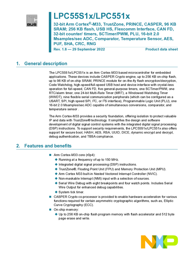 LPC551x/S1x: Baseline Arm<sup>®</sup> Cortex<sup>®</sup>-M33-Based Microcontroller Family