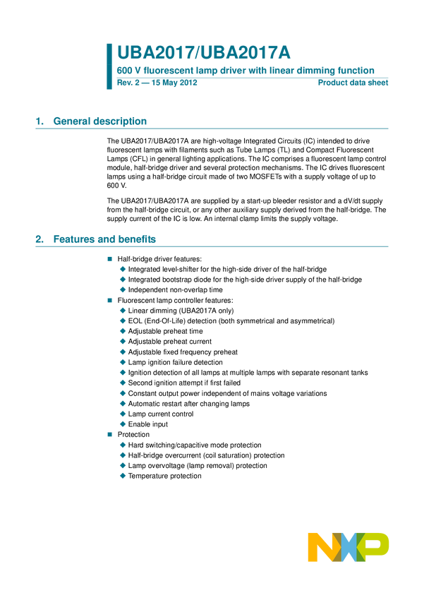 UBA2017DB1064 UBA2017P 2 x 28 W T5 demo board with passive PFC