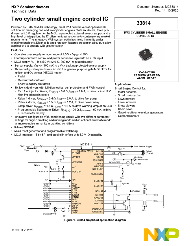 MC33814AE Engine Control IC, Two Cylinder, Electronic fuel injection (EFI), VRS, SPI,...