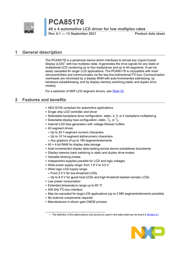 PCA85176H 40 x 4 automotive LCD driver for low multiplex rates