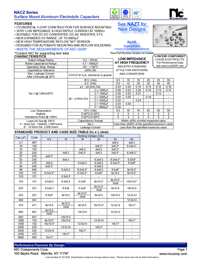 NACZ471M16V8X10.5TR NIC Components NACZ471M16V8X10.5TR Kondensator elektrolityczny 1 szt.