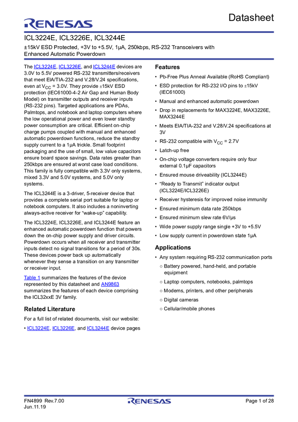 ICL3226ECAZ-T, ICL3226EIAZ, ICL3226EIAZ-T, ICL3226E