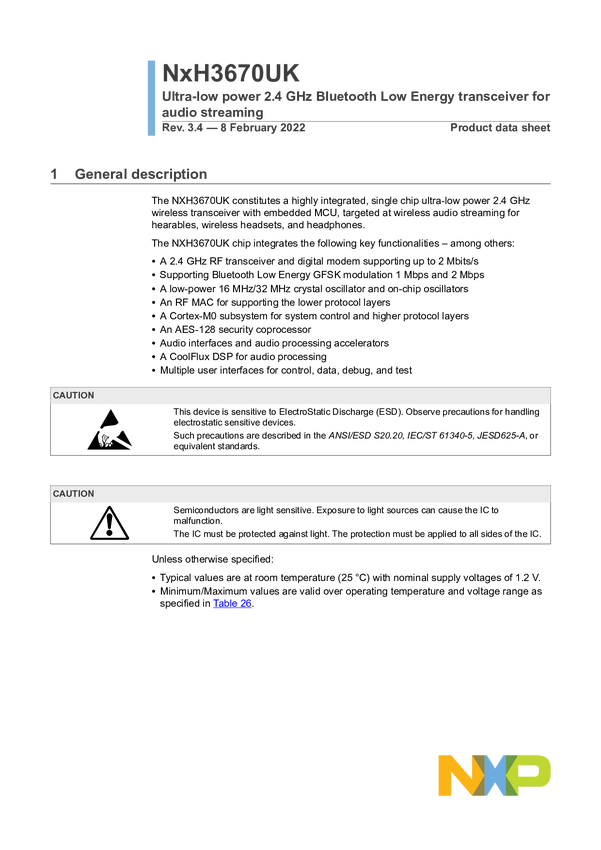 NXH3670UK Ultra-low Power, Low Latency Audio for Wireless Gaming Headphone
