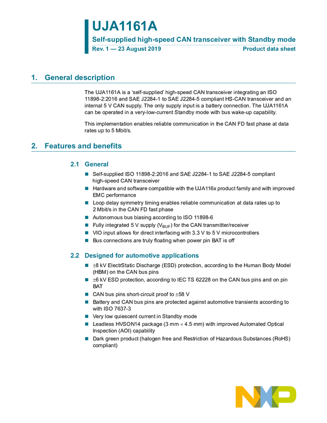 UJA1161ATK Self-supplied high-speed CAN transceiver with Standby mode
