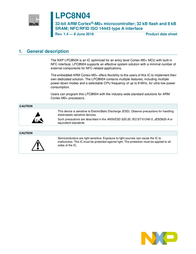 LPC8N04FHI24 Low-Cost Microcontrollers (MCUs) based on Arm® Cortex®M0+ Cores with NFC